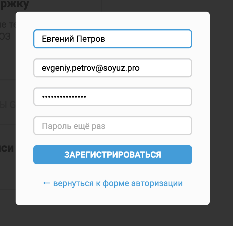 • Письмо с описанием заявки на адрес электронной почты support@soyuz.pro