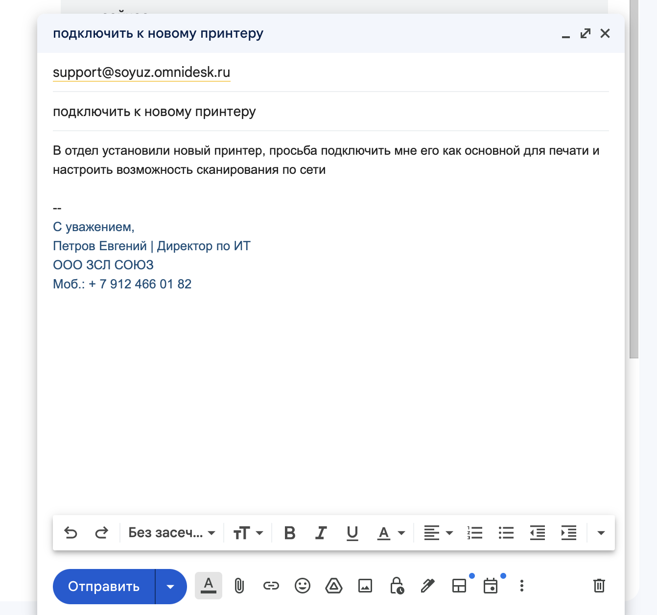 Вы можете направить свою заявку через электронную почту отправив письмо на адрес support@soyuz.pro