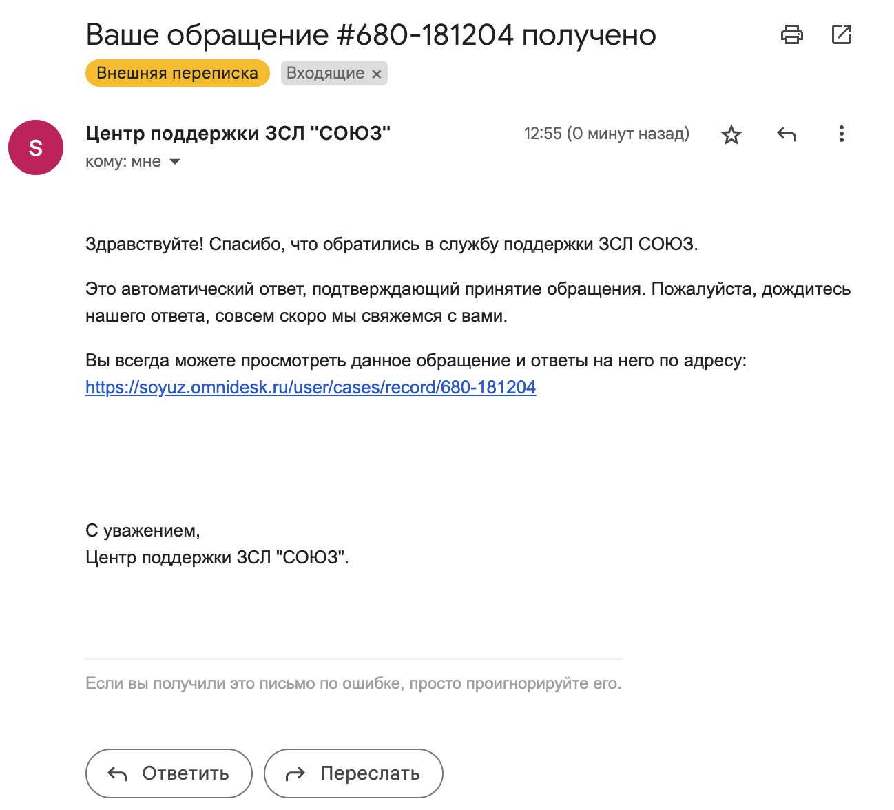 Также, вам придет ссылка, нажав на которую, вы сможете перейти к нашему порталу, отслеживать статус и общаться со специалистом по заявке: